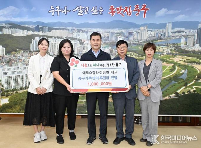 [ 한국미디어뉴스 이보영 기자 ] 김정민 에코스칼라 대표가 9월 29일 오후 3시 중구청 구청장실을 찾아 희망나눔동행을 통해 울산중구가족센터에 후원금 100만 원을 전달했다.