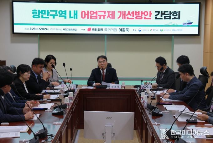 [ 한국미디어뉴스 이원영 기자 ] 이종욱 국회의원(국민의힘, 경남 창원시 진해구)은 29일 오후 2시, 국회 의원회관 제5간담회의실에서 『항만구역 내 어업규제 개선방안 간담회』를 개최했다.