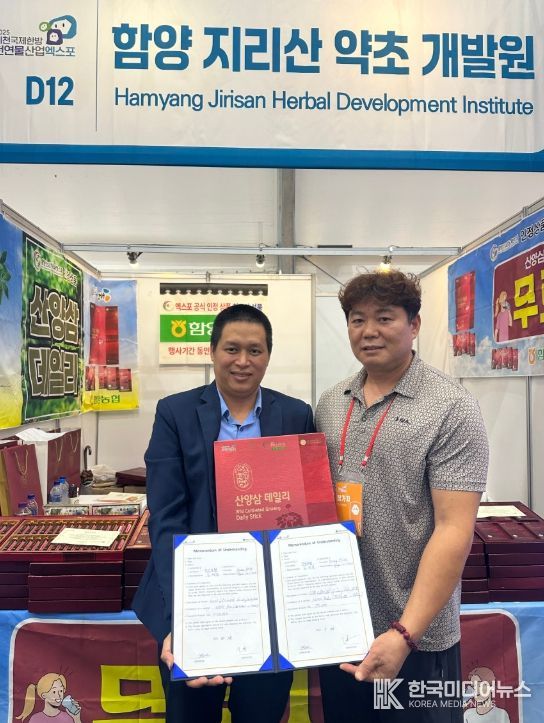 [ 한국미디어뉴스 김풍옥 기자 ] 경남 함양농협에서 운영하는 지리산약초개발원이 2025제천국제한방천연물산업엑스포에서 해외 기업과 연달아 수출협약을 체결하며 주목받고 있다.