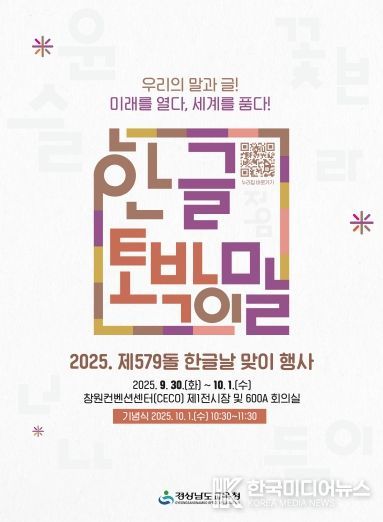 [ 한국미디어뉴스 이원영 기자 ] 경상남도교육청은 30일 창원컨벤션센터(CECO)에서 ‘2025 제579돌 한글날 맞이 행사’를 성황리에 개막하며, 이틀간의 뜻깊은 여정을 시작했다.