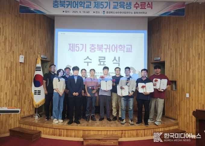 [ 한국미디어뉴스 김풍옥 기자 ] 충청북도내수면산업연구소는 지난 8월 25일부터 9월 26일까지 5주간 운영된 ‘2025년 충북 귀어학교 제5기 교육’을 성공적으로 마무리하고, 총 6명의 수료생을 배출했다고 30일 밝혔다.