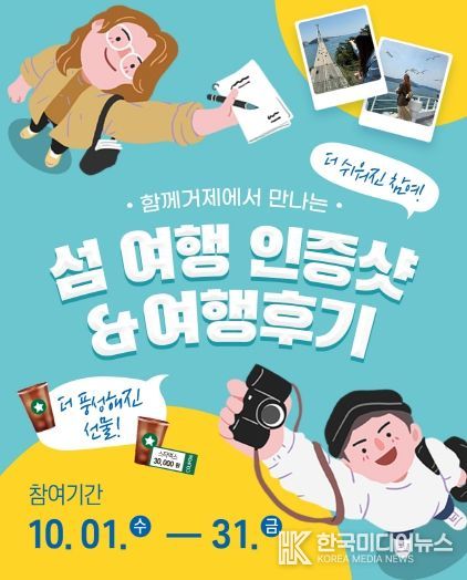 [ 한국미디어뉴스 이원영 기자 ] 거제시 시정소식지‘함께거제’는 시민과 독자의 참여를 확대하고, 거제 섬 여행의 매력을 널리 알리기 위해‘섬 여행 인증샷 & 여행후기 이벤트’를 10월 한 달간 진행한다.