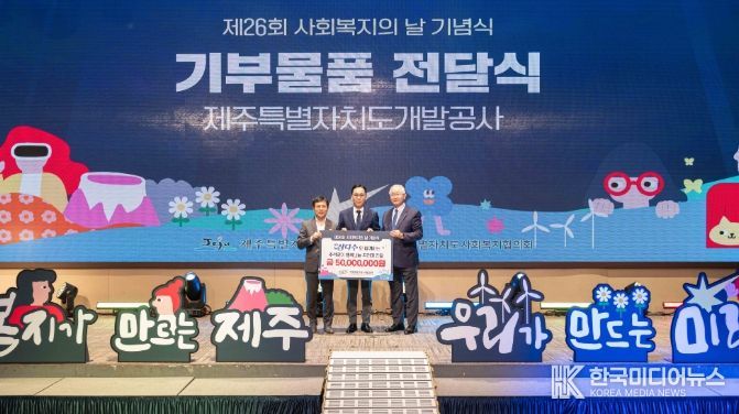 제주특별자치도개발공사(사장 백경훈)는 최근 열린 사회복지의 날 행사에서 2025 추석맞이 행복 나눔 꾸러미 기부금 5천만 원을 전달한 것과 관련, 26일부터 도내 취약계층 500가구에 꾸러미를 배송하고 있다고 밝혔다.