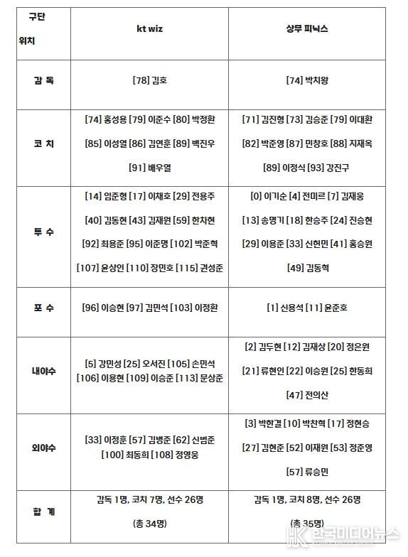 [ 한국미디어뉴스 이원영 기자 ] 10월 1일(수) 오후 7시 고척스카이돔에서 개최되는 2025 KBO 퓨처스리그 챔피언결정전에서 맞붙는 KT와 상무의 출장자 명단이 발표됐다.