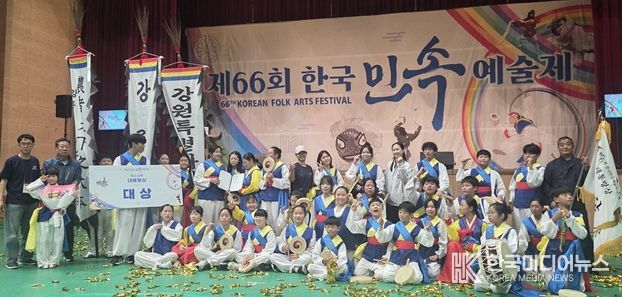 [ 한국미디어뉴스 이원영 기자 ] 강원특별자치도는 문화체육관광부 주관 '제66회 한국민속예술제' 청소년부 경연에서 강원 대표로 참가한 강릉농악보존회가 대통령상(대상)을 수상했다고 밝혔다.