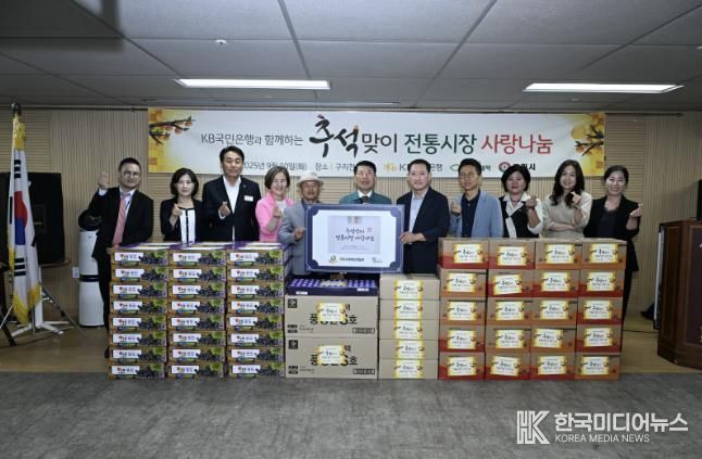 [ 한국미디어뉴스 김서안 기자 ] 구리시는 9월 30일 구리 전통시장에서 ‘KB국민은행·기아 대책 사랑 나눔 행사’를 개최했다고 밝혔다. 이날 행사에는 KB국민은행 구리지역본부, 기아 대책 대외협력실 관계자, 구리 전통시장 정지영 수석부회장, 구리시 경제인연합회 이춘본 회장 등이 함께해 따뜻한 나눔의 의미를 더했다.