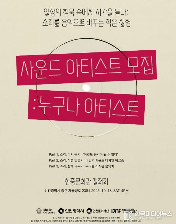 인천중구문화재단 관계자는 “참여자가 곧 예술가가 되는 이번 프로젝트는 관객이 단순한 수용자가 아니라 창작의 주체로서 무대에 함께 서는 새로운 경험을 제공할 것”이라고 밝혔다.