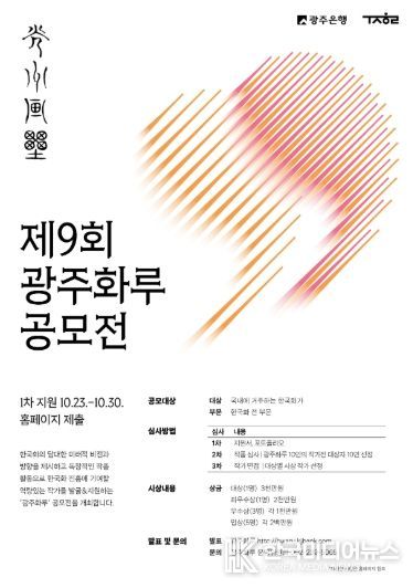 [ 한국미디어뉴스 이종철 기자 ] 광주은행은 전국 한국화 작가를 대상으로 ‘제9회 광주화루 공모전’을 개최한다고 밝혔다.