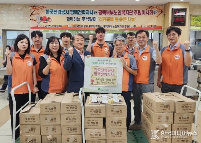 [ 한국미디어뉴스 이보영 기자 ] 평택북부노인복지관은 9월 30일 한국전력공사 평택전력지사로부터 추석을 앞두고 복지관 이용 어르신들을 위한 송편나눔을 위한 온누리 상품권 전달식을 진행했다.
