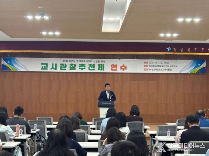 [ 한국미디어뉴스 이보영 기자 ] 포항교육지원청은 10월 1일 포항교육지원청 대회의실에서 초ㆍ중등 영재교육업무 담당 교사 100여명을 대상으로 '2026학년도 영재교육대상자 선발을 위한 교사관찰추천제 연수'를 실시했다.