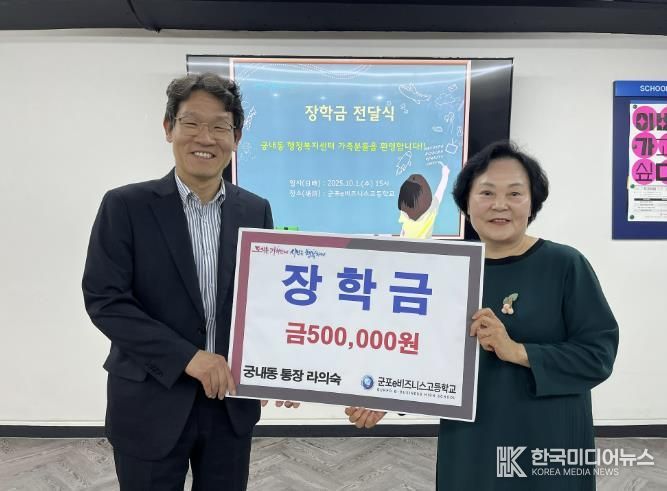 [ 한국미디어뉴스 이보영 기자 ] 라의숙 군포시 궁내동통장협의회장은 10월 1일 군포e비즈니스고등학교에 장학금을 전달하며 지역 청소년들의 꿈을 응원하는 뜻깊은 나눔을 실천했다.