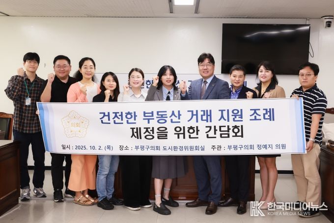 [ 한국미디어뉴스 양선희 기자 ] 인천 부평구의회 정예지 의원(더불어민주당 비례)은 지난 10월 2일 부평구의회 도시환경위원회실에서 '인천광역시부평구 건전한 부동산 거래 지원 조례'제정을 위한 간담회를 개최했다.