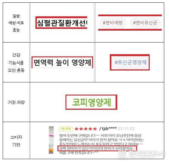 아울러, 건강기능식품 등을 온라인에서 구매하려는 경우 건강기능식품 도안과 ‘~에 도움을 줄 수 있음’과 같은 기능성 내용을 꼼꼼히 확인하고, 검증되지 않은 의학적 효능·효과 등을 내세우는 부당광고에 현혹되지 않도록 주의해야 한다.
