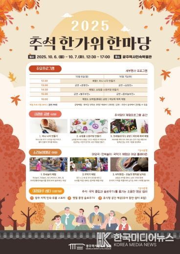 [ 한국미디어뉴스 이종철 기자 ] 광주역사민속박물관은 추석 명절을 맞아 오는 6일부터 7일까지 이틀간 ‘2025년 추석 한가위 한마당’을 개최한다.