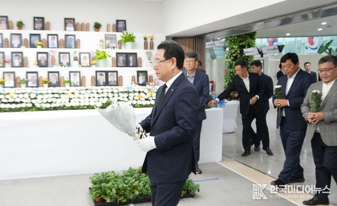 [ 한국미디어뉴스 이종철 기자 ] 김영록 전라남도지사는 추석을 앞둔 3일 제주항공 여객기 사고 희생자 무안공항 합동분향소를 찾아 헌화·분향하며 희생된 분들의 넋을 기렸다.