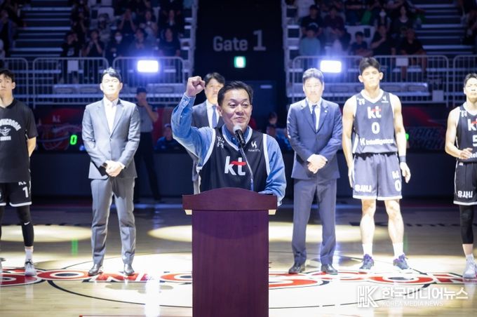 [ 한국미디어뉴스 이보영 기자 ] 이재준 수원특례시장이 4일 수원KT소닉붐아레나에서 열린 ‘2025-2026 프로농구 KBL 홈 개막전’에서 개막선언을 했다.