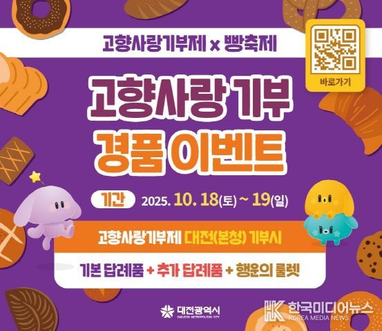 전재현 대전시 행정자치국장은 “대전 빵축제는 전국에서 많은 관광객이 찾는 대표 축제”라며 “이번 홍보관 운영을 통해 고향사랑기부제를 널리 알리고 시민 참여를 더욱 확대하겠다. 앞으로도 다양한 문화·체육·관광 행사와 연계해 기부제를 활성화하겠다”라고 말했다.