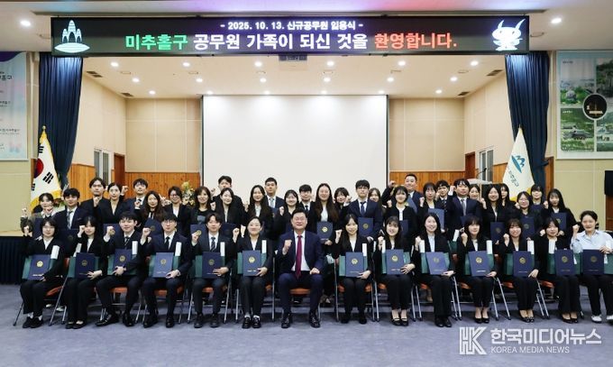 [ 한국미디어뉴스 최치남 기자 ] 인천 미추홀구는 지난 13일 구청 대회의실에서 신규 공무원 42명에 대한 임용장 수여식을 개최했다.