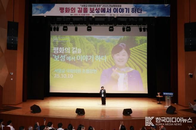 [ 한국미디어뉴스 이종철 기자 ] 보성군은 지난 10일 보성군문화예술회관에서 개최된 ‘서영교 국회의원 초청 2025 전남평화포럼’이 군민 700여 명이 참석한 가운데 성황리에 마무리됐다고 밝혔다.