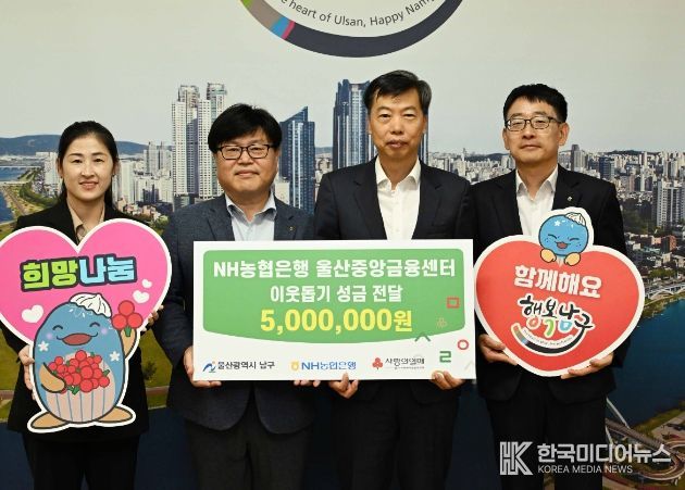 [ 한국미디어뉴스 이보영 기자 ] NH농협은행 울산본부는 13일 남구청을 방문해 ‘경로의 달’을 기념하여 남구 지역 어르신들의 복지 향상을 위한 후원금 500만 원을 전달했다.