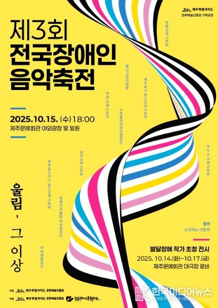 [ 한국미디어뉴스 이원영 기자 ] 제주특별자치도 문화예술진흥원은 오는 15일 오후 6시 문예회관 광장에서 ‘제3회 전국장애인 음악 축전’을 개최한다.