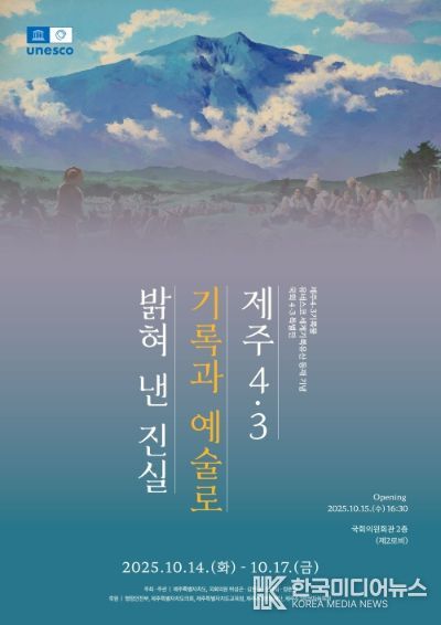 [ 한국미디어뉴스 이원영 기자 ] 제주특별자치도와 위성곤·김한규·문대림·정춘생 국회의원이 공동주최하는 ‘제주4·3, 기록과 예술로 밝혀낸 진실: 국회4·3특별전’이 오는 14일부터 17일까지 국회의원회관 2층(제2로비)에서 열린다.
