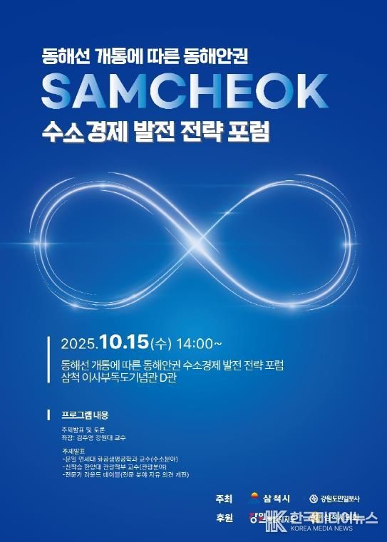 [ 한국미디어뉴스 이원영 기자 ] 대한민국 대표 수소 도시인 삼척시가 동해선 중심의 수소경제 벨트 구축 방안과 수소경제 파급효과를 통한 삼척 관광 발전 전략을 모색하기 위한 ‘수소경제 발전전략 포럼’을 개최한다고 밝혔다.