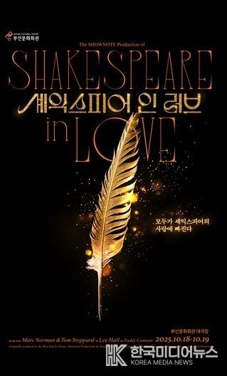 [ 한국미디어뉴스 이원영 기자 ] (재)부산문화회관(대표이사 차재근)은 오는 10월 18일(토)부터 19일(일)까지, 연극 '셰익스피어 인 러브'를 총 4회에 걸쳐 부산문화회관 대극장 무대에 올린다.