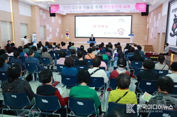 [ 한국미디어뉴스 이종철 기자 ] 화순군은 지난 14일 ‘2025 화순 고인돌 가을꽃 축제’의 성공 개최를 위하여 자원봉사자 150여 명을 대상으로 군청 대회의실에서 자원봉사자 기본 교육을 진행했다고 밝혔다.