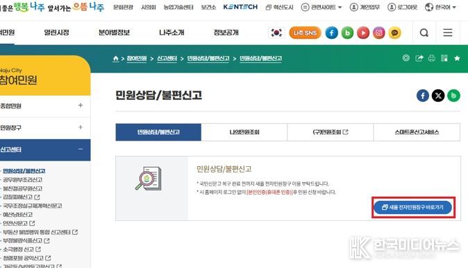 [ 한국미디어뉴스 이종철 기자 ] 전라남도 나주시가 국민신문고 서비스 중단으로 인한 시민 불편을 최소화하기 위해 ‘새올 전자민원창구’를 임시 운영한다.