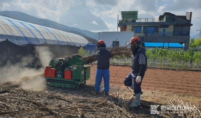 이 사업은 과수잔가지, 고춧대, 깻대 등 영농부산물을 무료로 파쇄 처리해 농가의 부담을 덜고, 불법소각으로 인한 산불과 환경오염을 예방하기 위한 것이다.