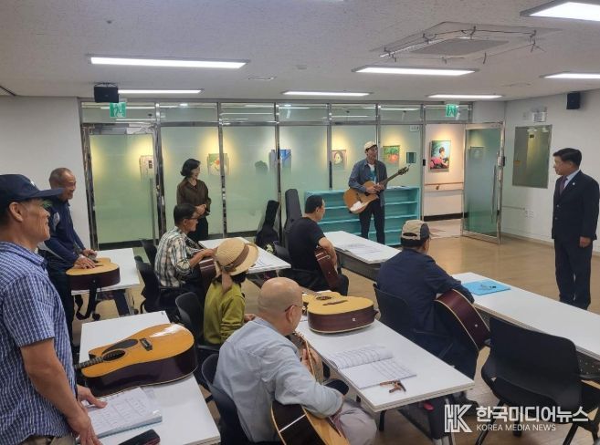 [ 한국미디어뉴스 이원영 기자 ] 고성군이 운영하는 고성군종합사회복지관 분관에서는 10월 17일 저녁, 야간노래교실과 통기타반 수강생들을 격려하기 위해 이상근 군수가 직접 현장을 방문했다.