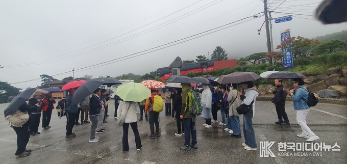 가랑비가 오는 가운데 인천을 출발하여 경북 문경에 위치한 문경새재를 향해 가던 중 다행히도 비가 멈쳤으나 도착하여 내리니 다시 비가 내리기 시작했다.