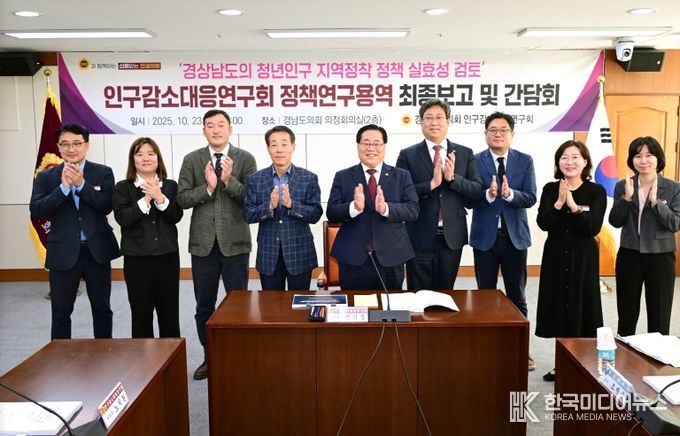 [ 한국미디어뉴스 이원영 기자 ] 경남도의회 의원 연구단체 인구감소대응연구회(회장 전기풍 의원)는 23일 ‘경상남도의 청년인구 지역정착 정책 실효성 검토’를 주제로 한 정책연구용역의 최종 보고회를 개최했다.