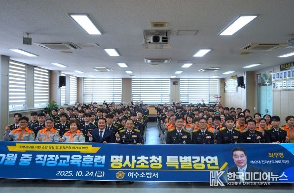 [ 한국미디어뉴스 이종철 기자 ] 여수소방서(서장 서승호)는 10월 24일 본서에서 전 직원 및 의용소방대원을 대상으로 청렴·소통 강화 및 전기차 화재대응 특별교육, 명사 초청 공직자 교육을 실시했다.