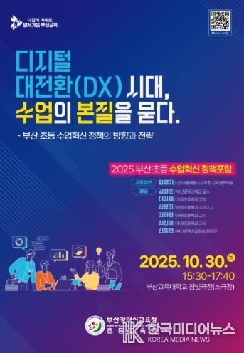 [ 한국미디어뉴스 이원영 기자 ] 부산광역시교육청은 오는 30일 오후 부산교육대학교 참빛극장에서 초등 교원과 교육전문직원 등 200여 명을 대상으로 ‘디지털 대전환(DX)* 시대, 수업의 본질을 묻다’를 슬로건으로 ‘2025 부산 초등 수업혁신 정책포럼’을 개최한다고 밝혔다.