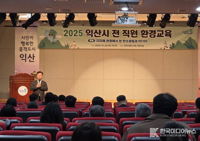 익산시는 28일 모현도서관 시청각실에서 '지자체 관점에서 본 탄소중립과 RE100'을 주제로 공무원 환경교육을 진행했다.