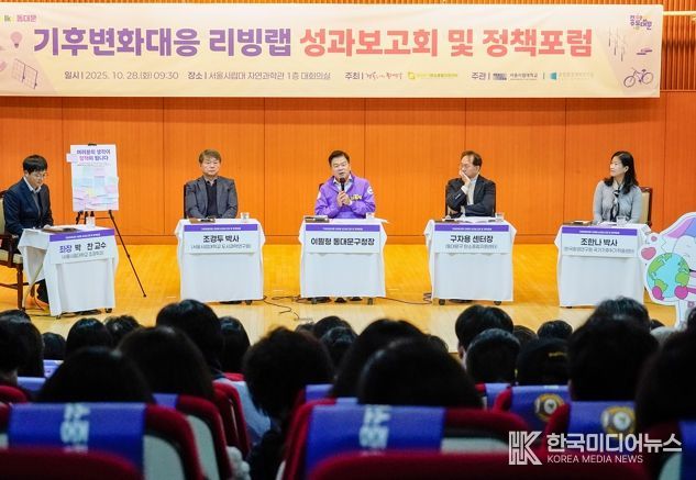 [ 한국미디어뉴스 이보영 기자 ] 서울 동대문구는 28일 서울시립대학교 자연과학관에서 ‘기후변화대응 리빙랩 성과보고회 및 정책포럼’을 개최했다고 밝혔다.