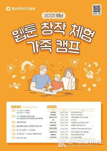 캠프는 서산 11월 8일, 천안 11월 15일에 각각 진행되며, 웹툰 창작에 관심 있는 충남도 거주 초등학생과 보호자가 한 팀을 이루어 참여할 수 있다.