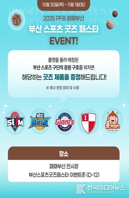 [ 한국미디어뉴스 이원영 기자 ] 부산시는 오늘(30일)부터 11월 1일까지 벡스코 제1전시장 1홀에서 열리는 '2025 패패부산'과 연계한 '부산 스포츠 굿즈 페스타' 행사를 개최한다고 밝혔다.