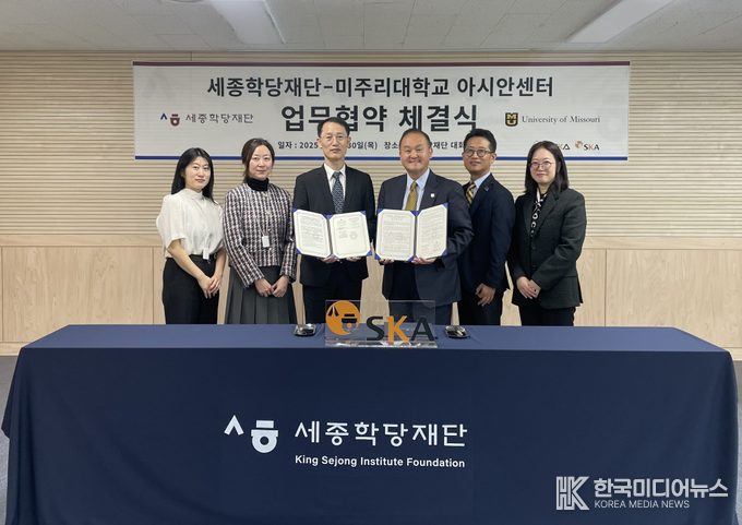 [ 한국미디어뉴스 이원영 기자 ] 세종학당재단(이사장 직무대리 사무총장 최현승)은 미국 미주리대학교 아시안센터(소장 김상순)와 세종한국어평가(SKA, iSKA) 시행을 위한 업무협약을 10월 30일 세종학당재단 회의실에서 체결했다.