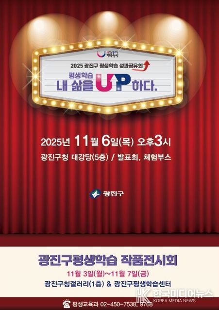 [ 한국미디어뉴스 이보영 기자 ] 광진구는 11월 3일부터 7일까지 5일간 ‘평생학습, 내 삶을 업(UP)하다’를 주제로 ‘2025 광진구 평생학습 성과공유회’를 개최한다.