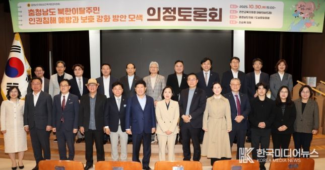 충남도의회와 도솔문화포럼은 30일 천안교육지원청 대회실에서 ‘충청남도 북한이탈주민 인권침해 예방과 보호 강화 방안 모색’을 주제로 의정토론회를 공동 개최했다.