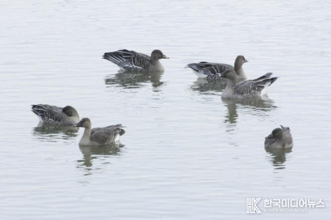 [ 한국미디어뉴스 이보영 기자 ] 의왕도시공사가 운영 중인 조류생태과학관은 최근 왕송호수 일대에서 실시간 생태환경 모니터링 과정에서 환경부 지정 멸종위기야생생물 2급인 큰기러기(Anser fabalis) 다수 개체를 관찰했다고 밝혔다.