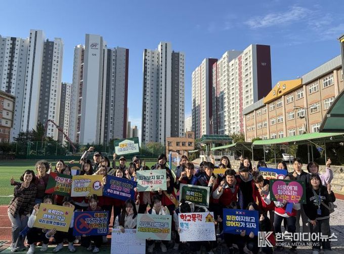 [ 한국미디어뉴스 이보영 기자 ] (재)평택시청소년재단이 지난 10월 21일부터 29일까지 관내 중고등학교 3개교를 대상으로 평택경찰서(여성청소년과)와 각 학교 학생회와 협력하여 ‘찾아가는 학교폭력 예방 캠페인’을 성공적으로 마무리했다고 밝혔다.
