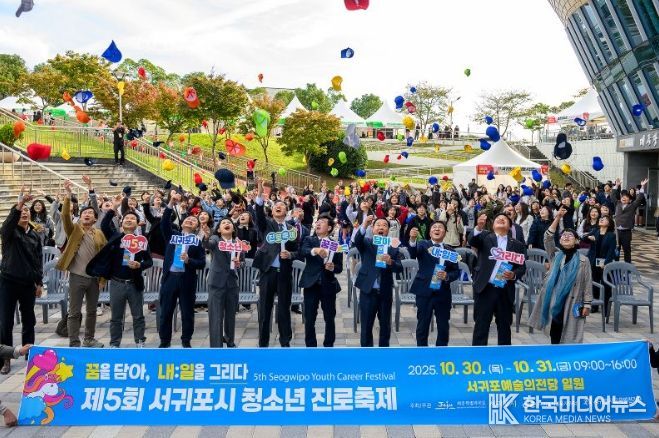 [ 한국미디어뉴스 이원영 기자 ] 서귀포시, 서귀포시교육지원청, (재)서귀포시교육발전기금이 공동주최한 제5회 서귀포시 청소년 진로축제 ‘꿈을 담아, 내:일을 그리다’가 10월 30일부터 10월 31일까지 서귀포예술의전당 일원에서 열려 청소년들의 뜨거운 참여 속에 성황리에 막을 내렸다.