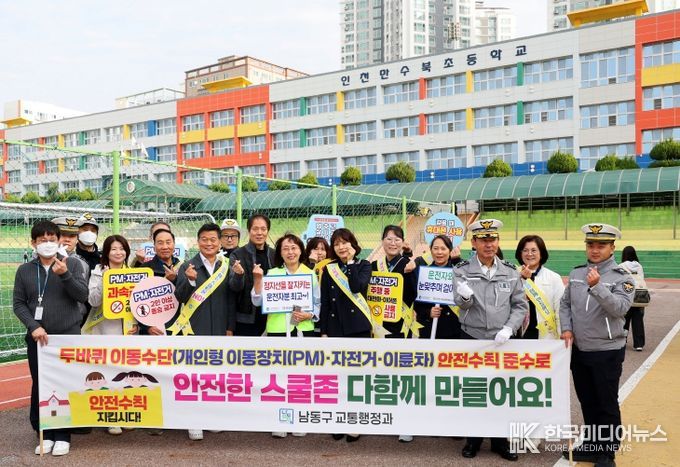 남동구는 이번 캠페인 외에도 관내 초·중·고에 자체 제작한 개인형 이동장치 안전 수칙 홍보물 및 홍보 동영상 자료를 배포하며, 두 바퀴 이동 수단별 맞춤형 교통안전 교육과 홍보를 지속해서 추진하고 있다.