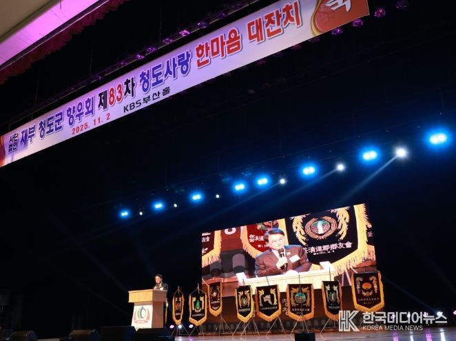 [ 한국미디어뉴스 이보영 기자 ] 지난 11월 2일 사단법인 재부청도군향우회(회장 박국현)는 ‘제83차 청도사랑 한마음 대잔치’를 부산 KBS 공개홀에서 개최했다.