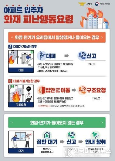이처럼 침착하게 대피공간으로 피신해 구조를 기다린 사례는 매우 적절한 대응으로, 실제 화재 상황에서는 무작정 탈출하기보다 상황에 맞는 판단이 무엇보다 중요하다. 이에 따라 예전에는 공동주택 화재 시 대피 요령으로 “불나면 대피 먼저”를 강조했지만, 최근에는 “불나면 살펴서 대피”로 지침이 바뀌었다. 복도나 계단에 불길이나 연기가 가득할 경우에는 문을 닫고 대피공간, 경량칸막이, 하향식 피난구 등 피난 시설을 활용해 실내에서 구조를 기다리는 것이 더 안전할 수 있다.