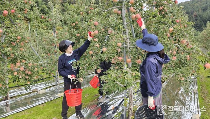 이번 봉사활동은 일손이 부족한 농가를 돕기 위해 마련된 자리로, 직원들은 낙과 정리와 수확 작업 등을 함께하며 농민들의 고충을 몸소 체험했다.